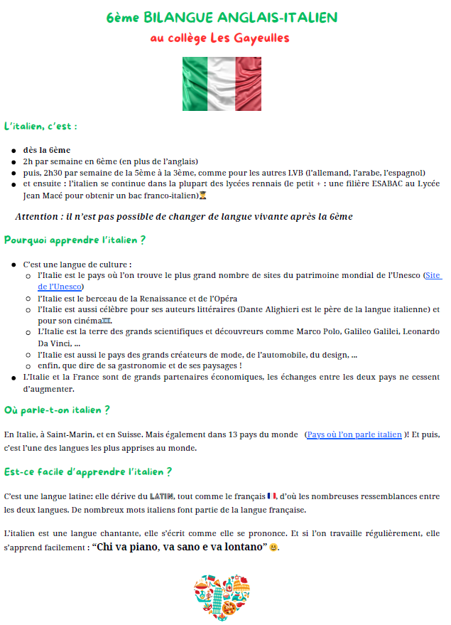 APPRENDRE L’ITALIEN EN LV2