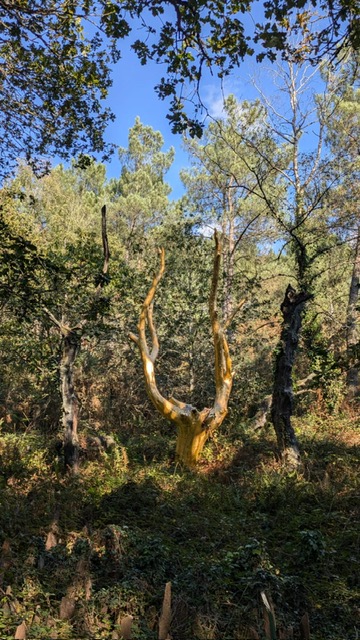 Le lendemain de notre arrivée, nous sommes partis directement avec nos amis français dans la forêt de Brocéliande, où nous avons écouté les récits légendaires de Merlin et de Morgane, admiré le Chêne d’or et nous nous sommes assis sur le trône de Merlin. Maintenant nous savons même comment dire « Hainbuche » (charme) et Stechpalme (houx) en français.